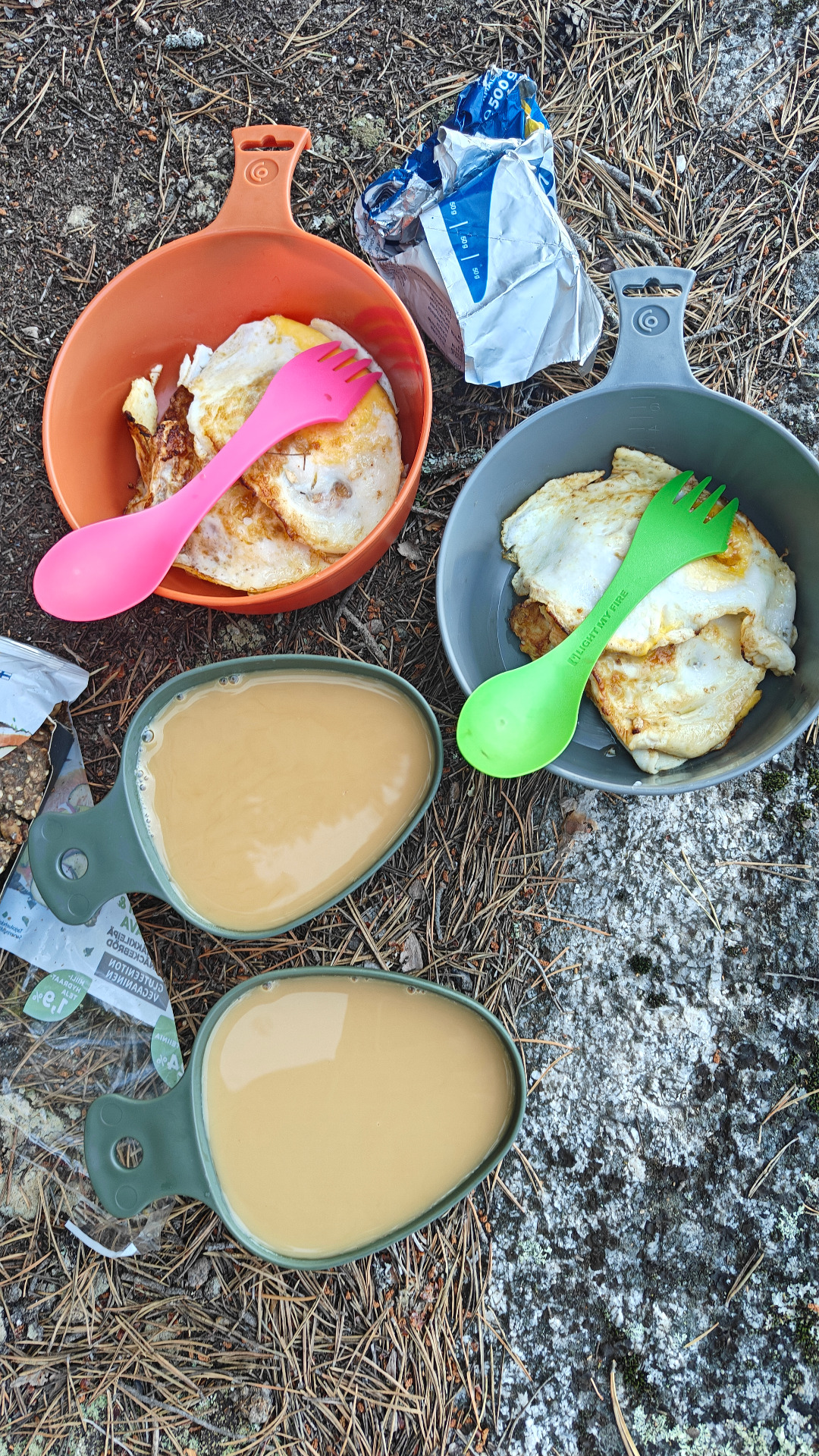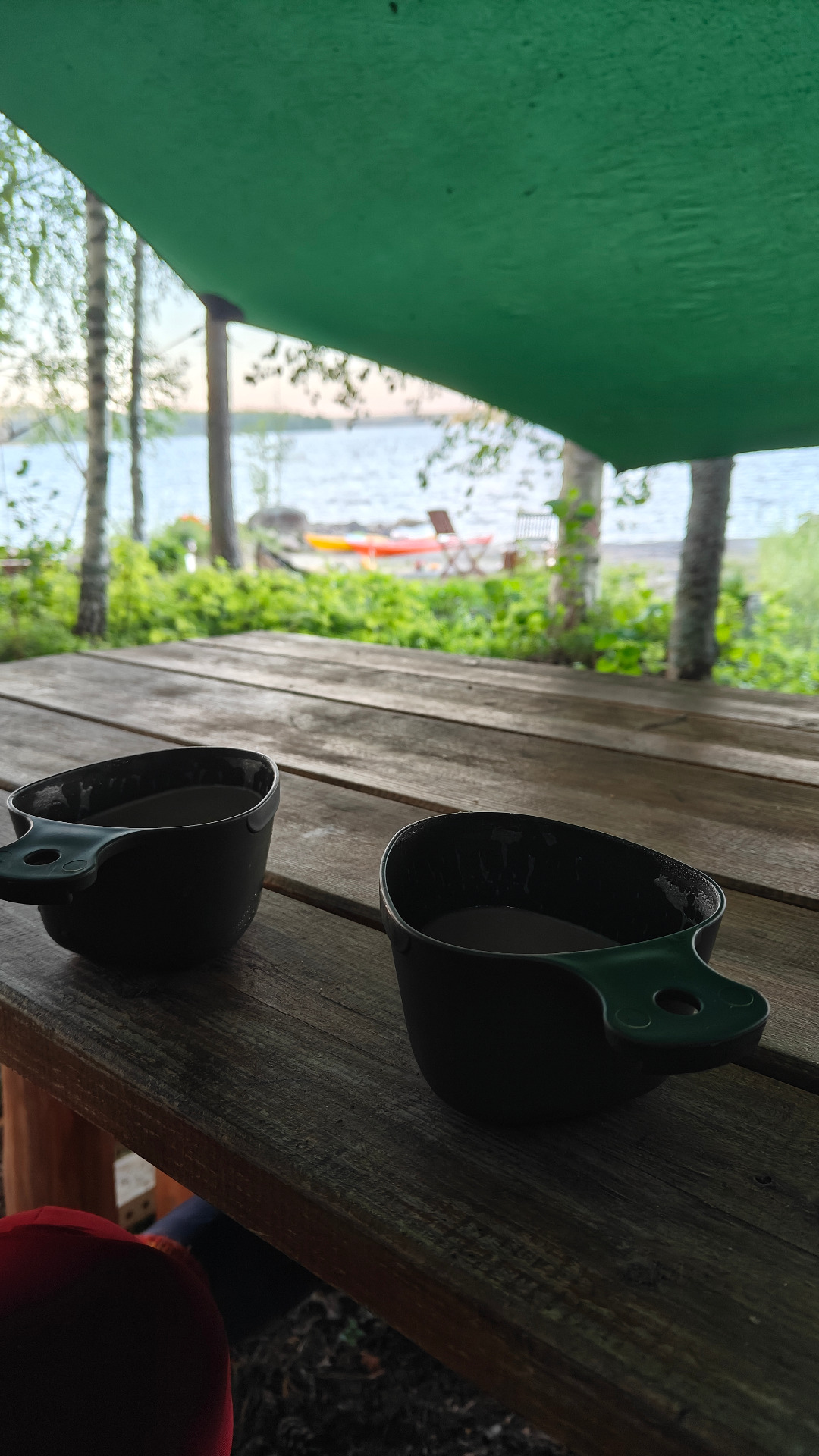 Aamupalaa tehdessä huomattiin, että vesivarastot olivat huvenneet eikä kumpikaan ollut eilen älynnyt täyttää kanistereita!