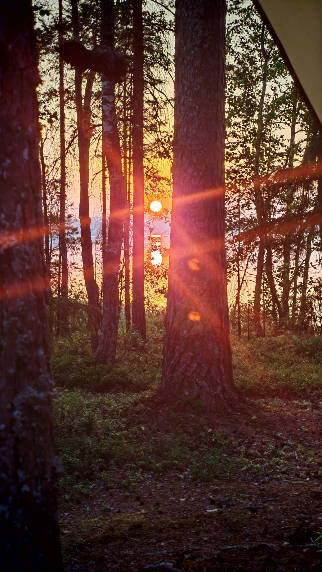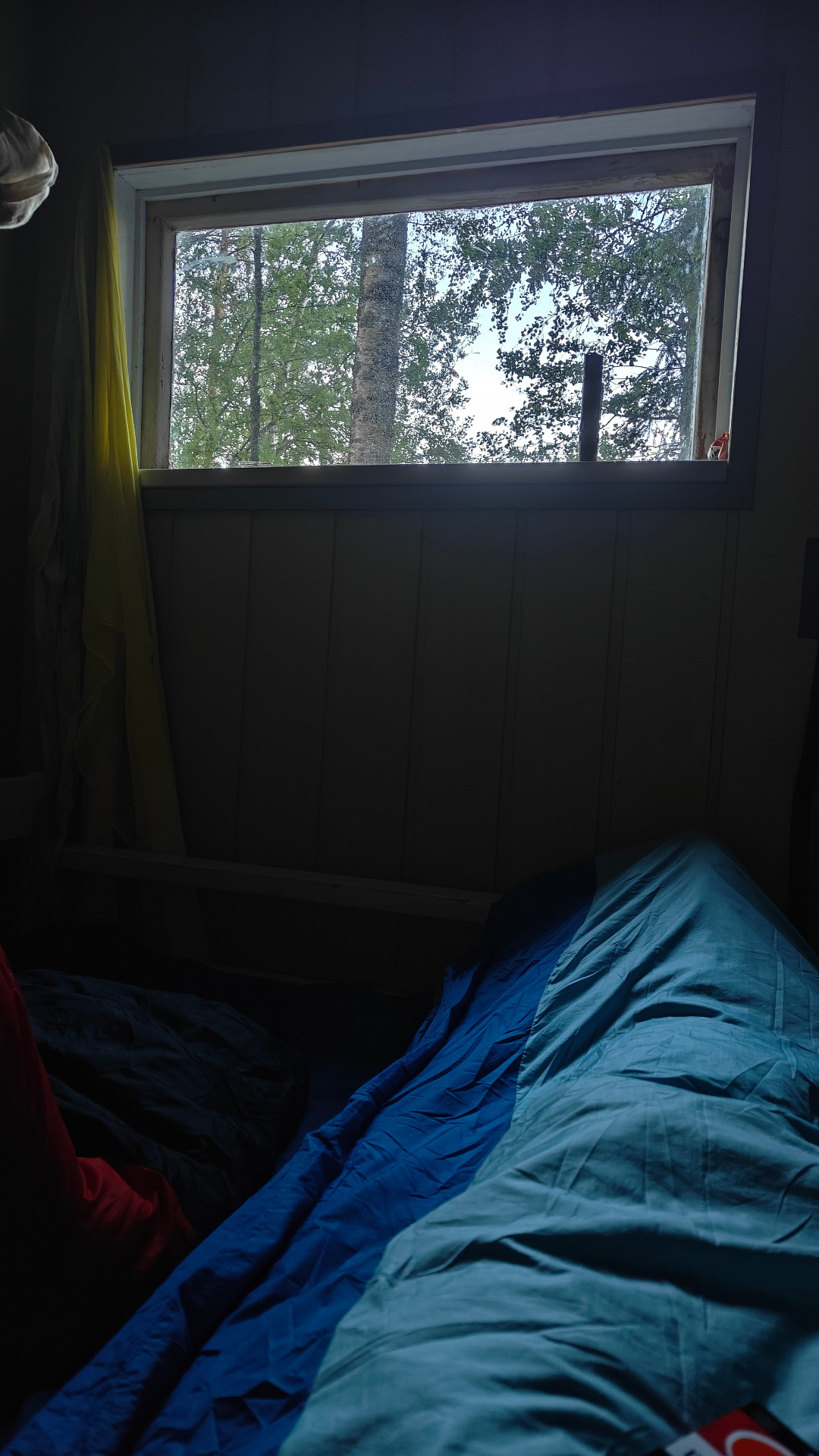 Vaihdettiin kuivaa ylle ja kääriydyttiin makuupusseihin nauttimaan sateen ropinasta ja suomen kesästä.