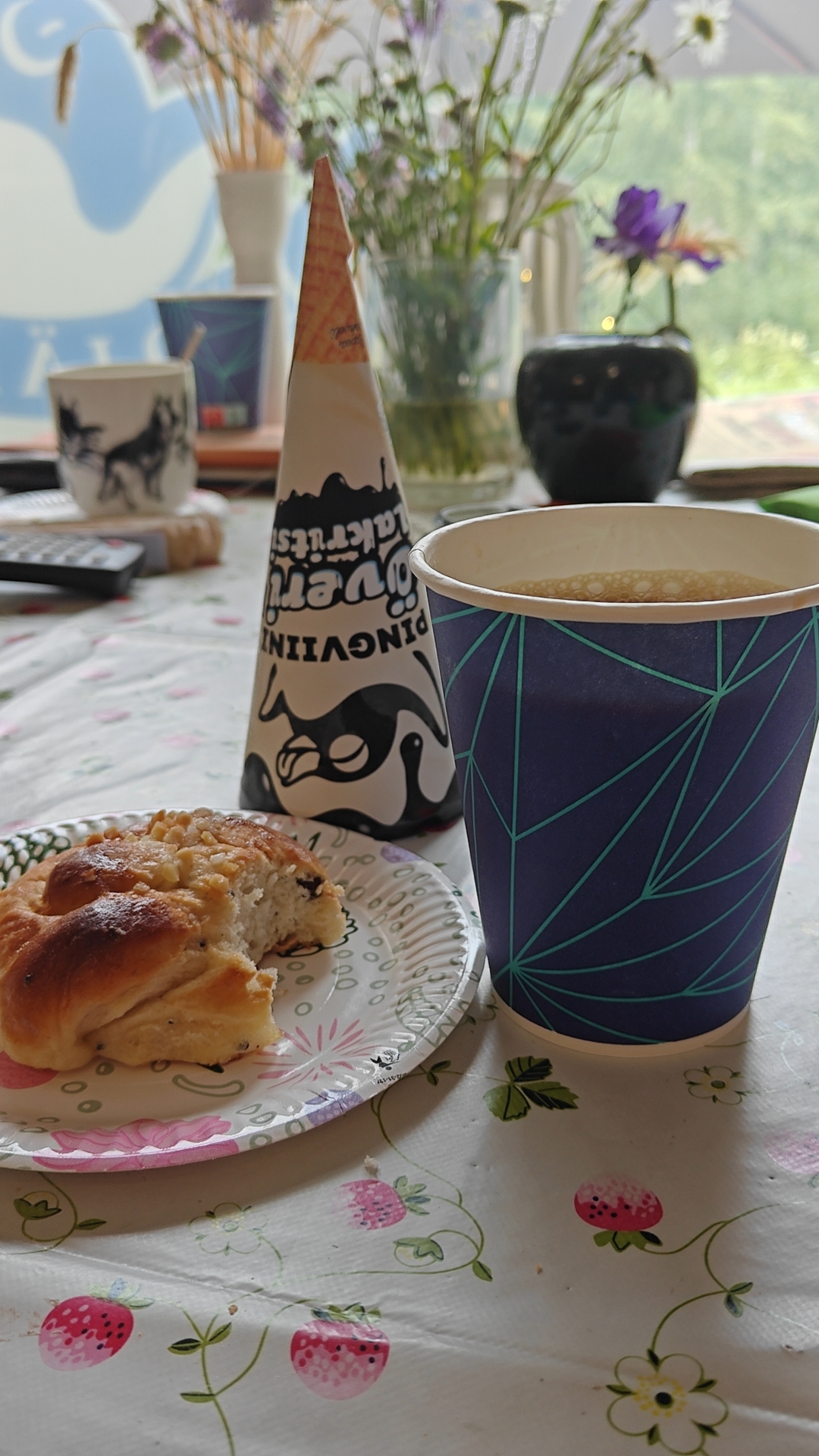 Juotiin teetä ja syötiin suklaata vesisateessa ja tuulessa.