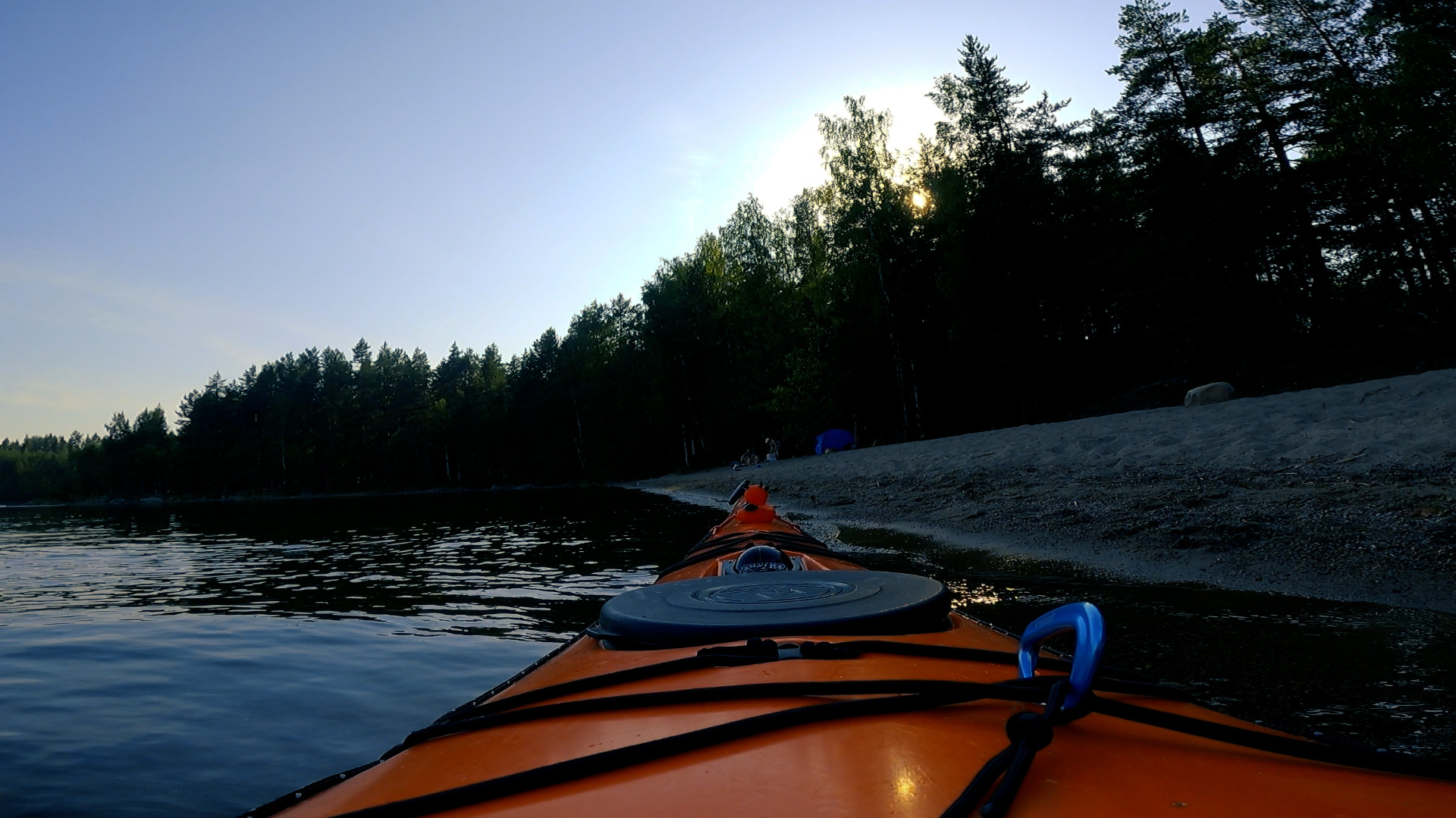 Alun perin meillä oli suunnitelmana meloa Kongon saaren pohjoispäätyyn mutta päätimme että leiriydymme Kongon saaren eteläpuolella olevalle saarelle (Mustasaari).