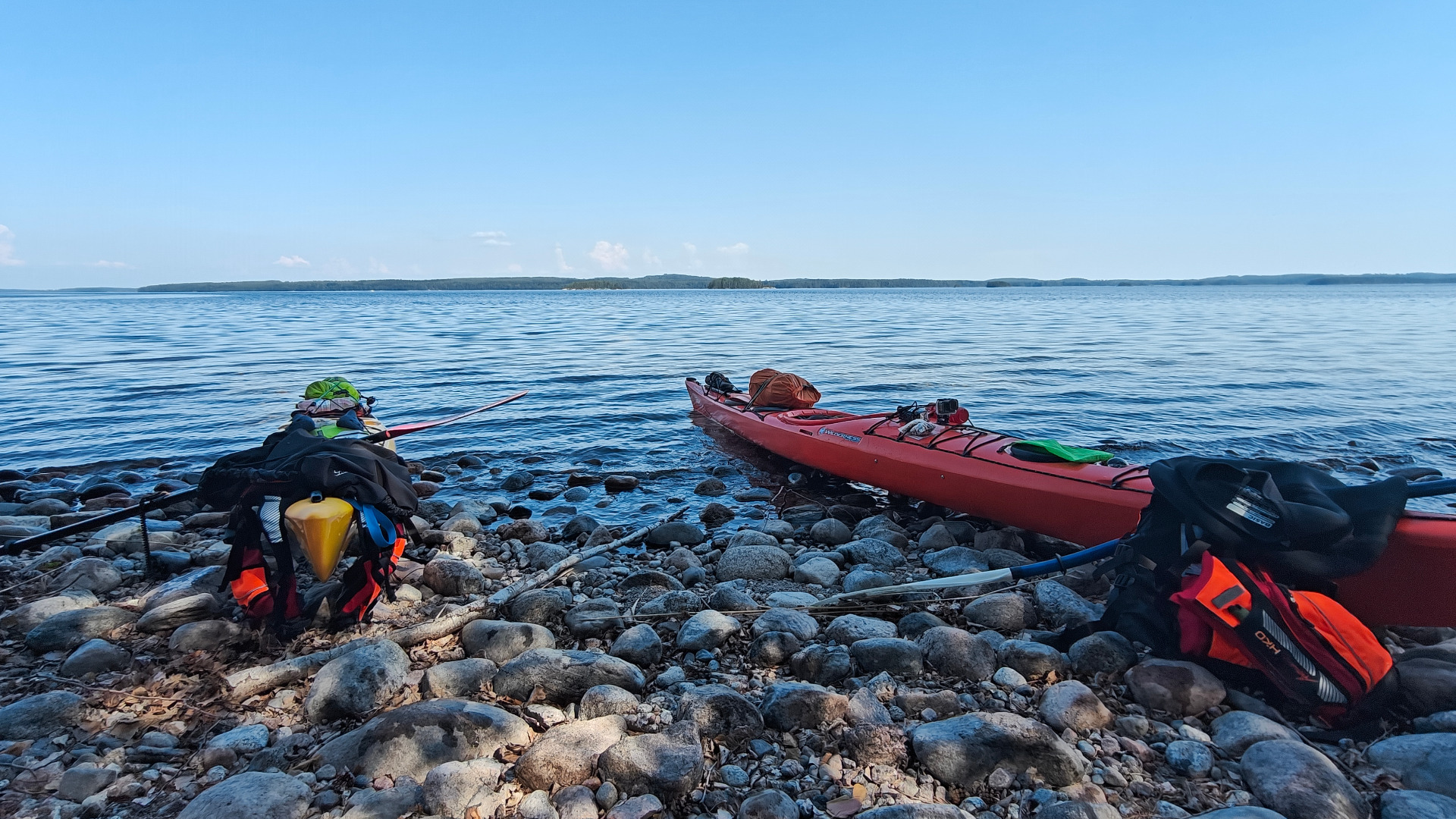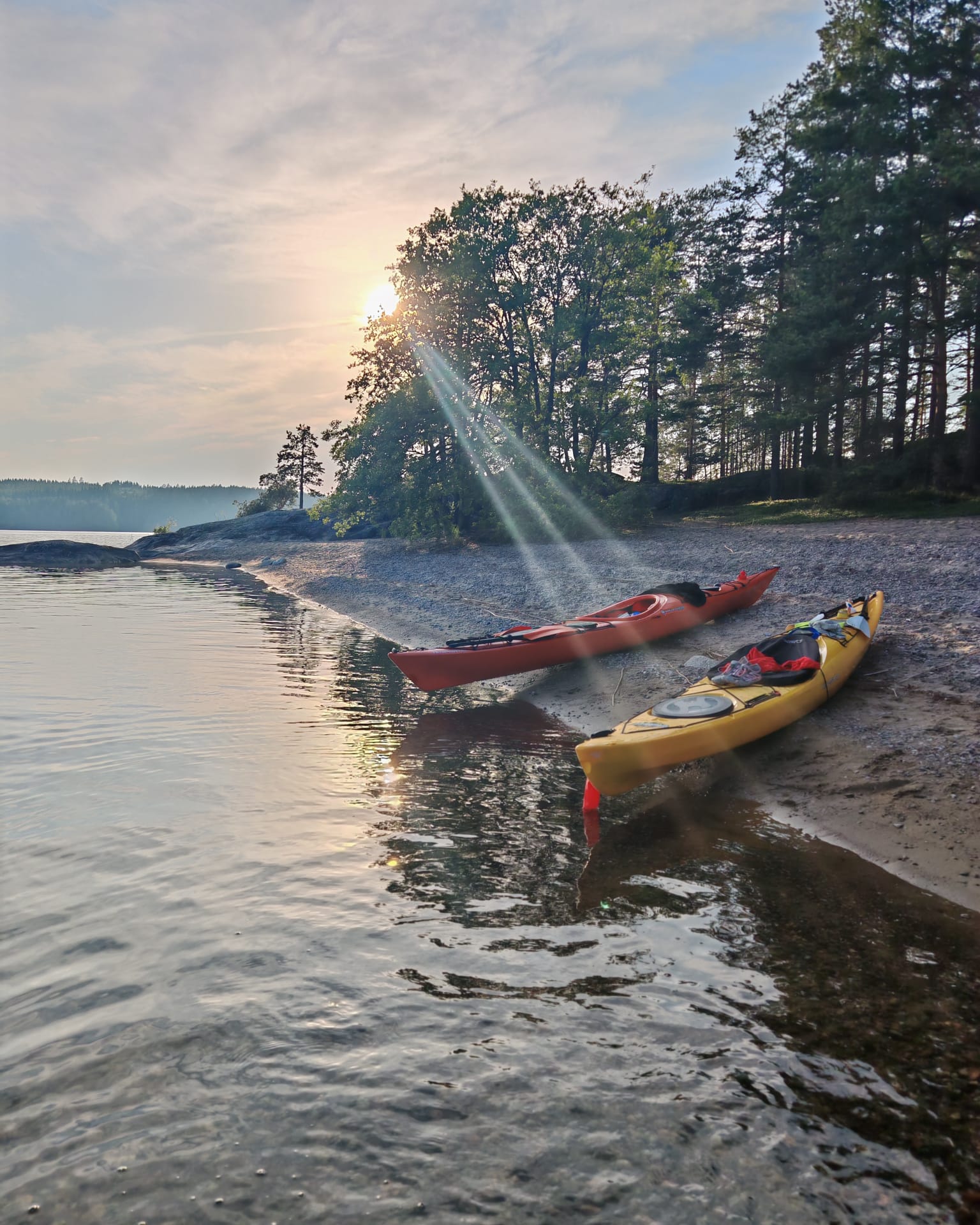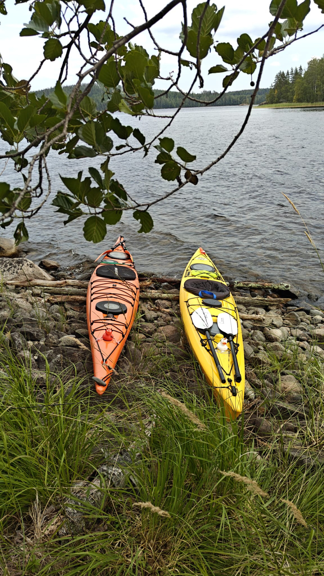 Koska vesistö alueella on todella kivikkoista ja kallioista niin meidän mielestämme ainoa oikea valinta on muovikajakki, lasikuituisella et voi rantautua missä haluat, vaan joudut etsimään sopivat rantautumispaikat.