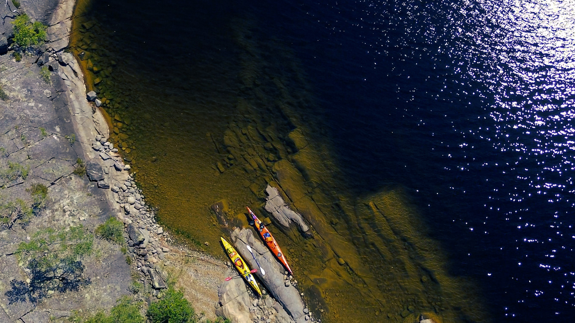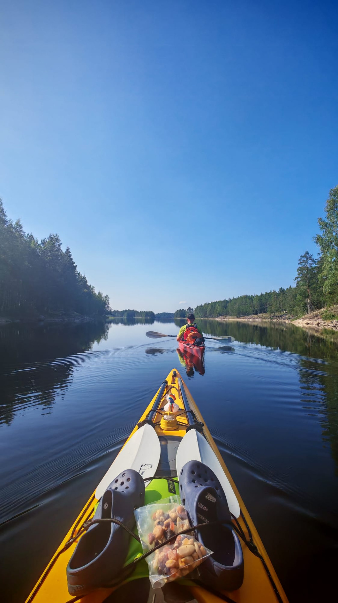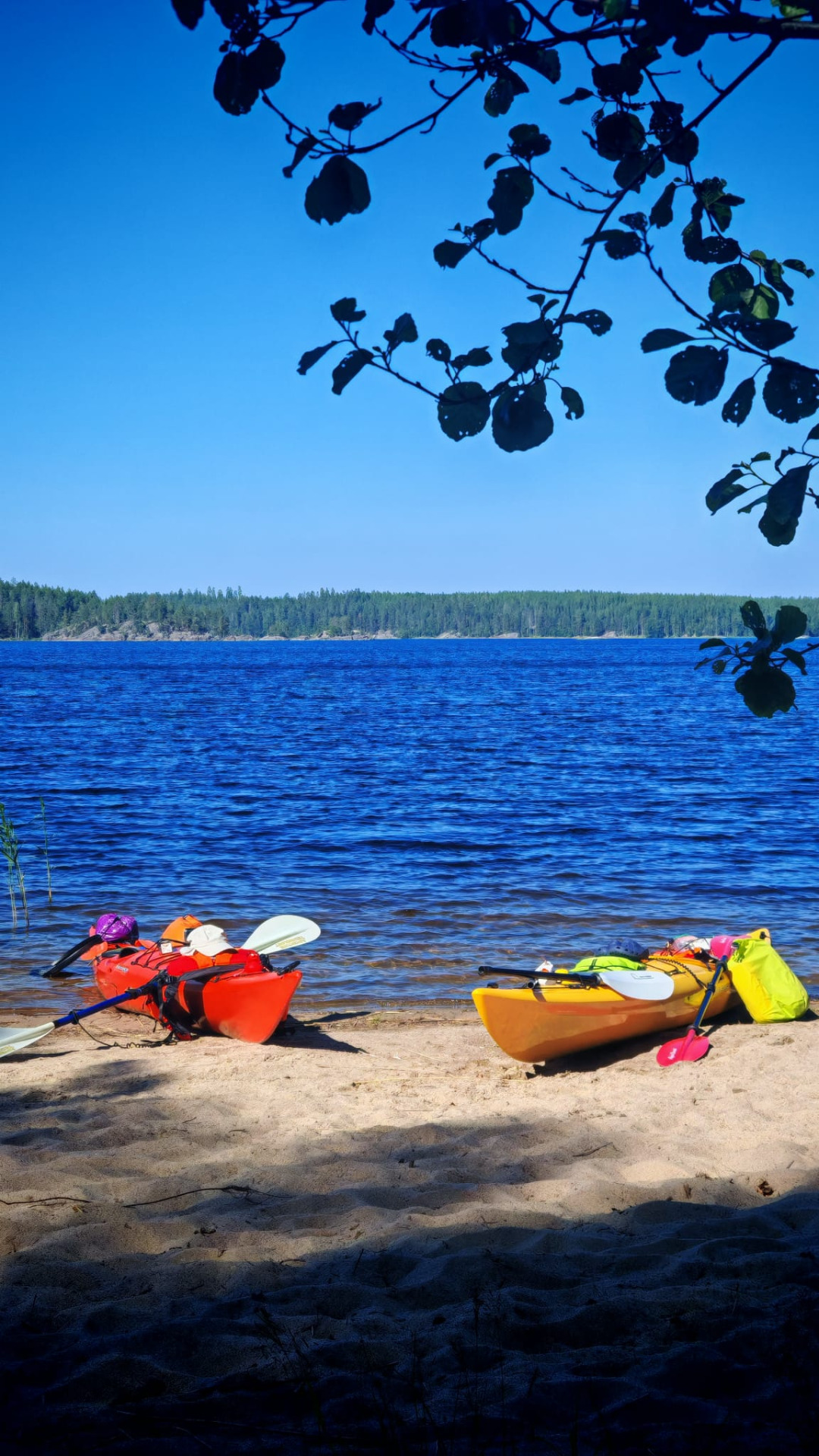 Koska vesistö alueella on todella kivikkoista ja kallioista niin meidän mielestämme ainoa oikea valinta on muovikajakki, lasikuituisella et voi rantautua missä haluat, vaan joudut etsimään sopivat rantautumispaikat.