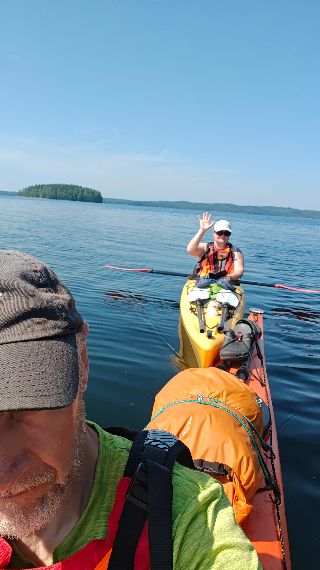 Sitten taas kajakit vesille ja matka jatkui kohti kolmanneksi päiväksi suunniteltua Pistalanharjun luonnonsatamaa.