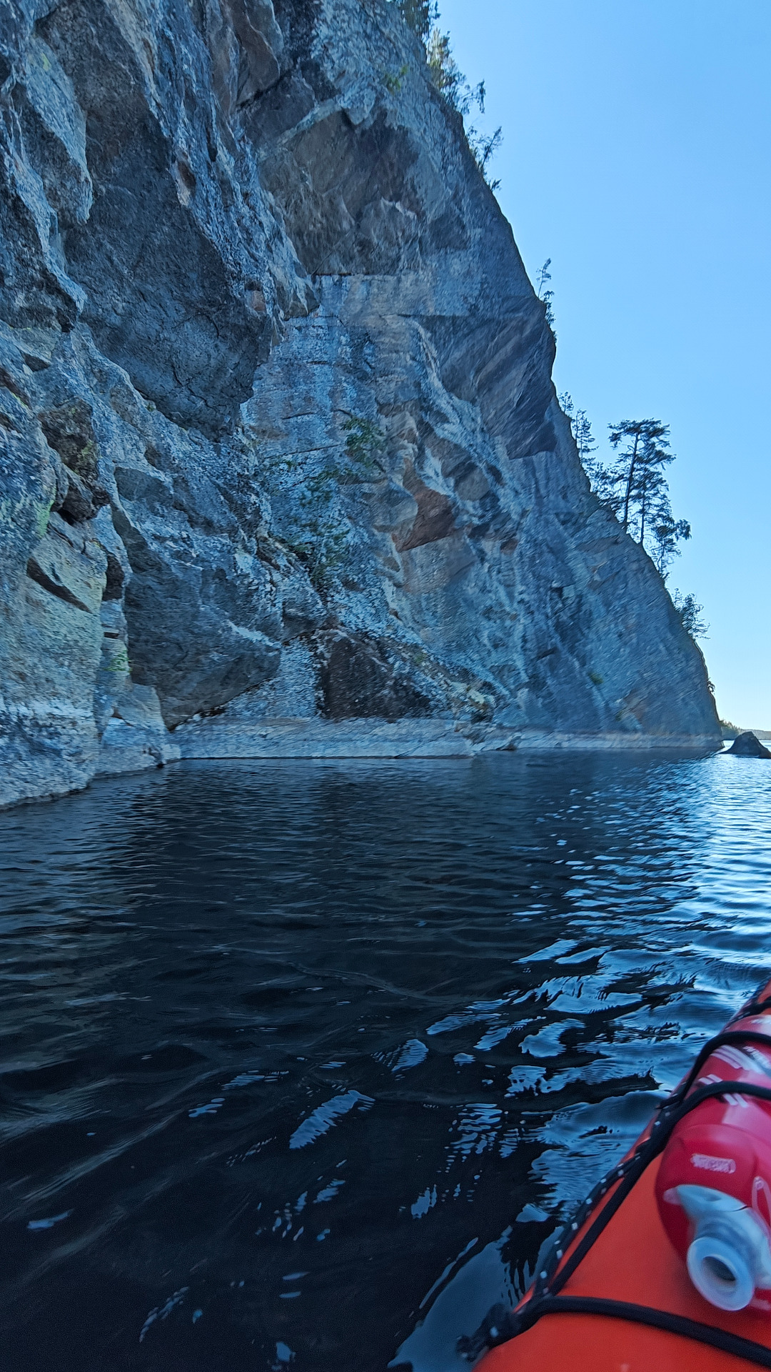 Meloimme noin 2 km Kongon saaren eteläpäähän, jossa sijaitsee salpalinjan luolasto, siellä Ari kuvasi hetken dronella ja otettiin juotavaa.