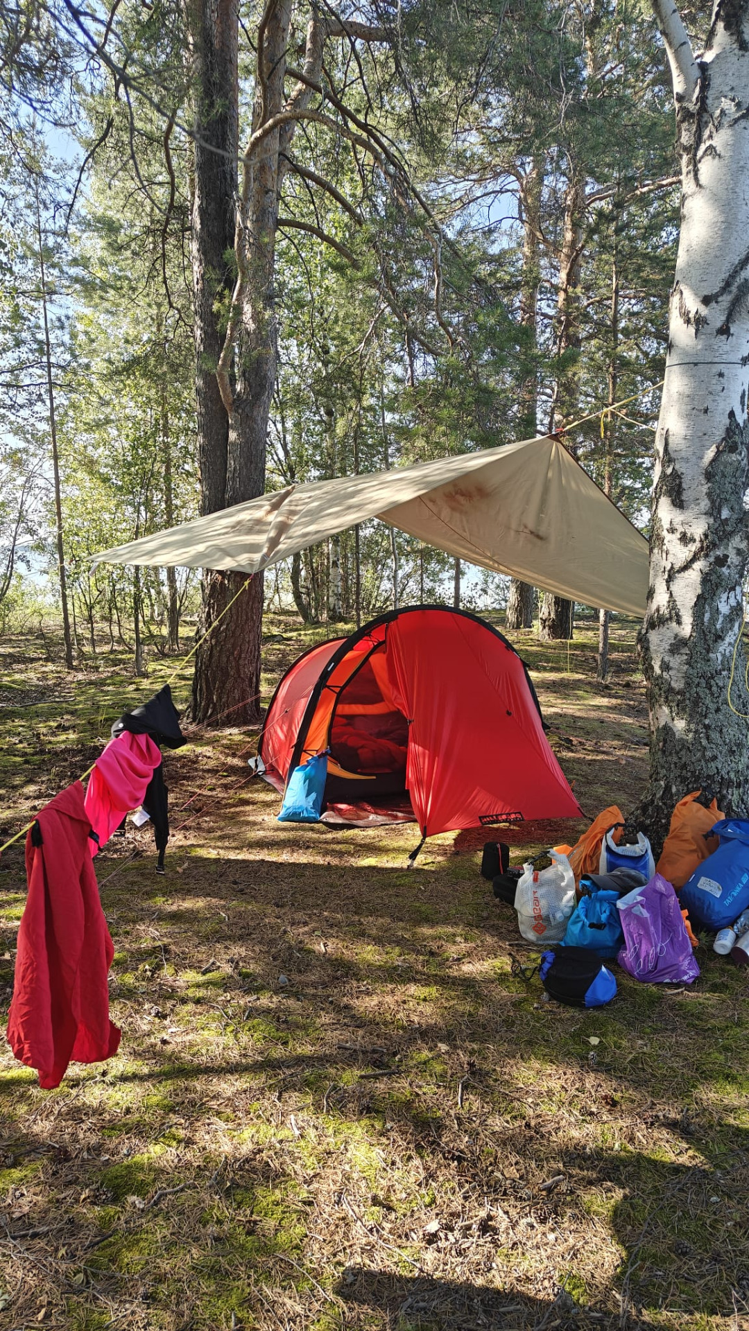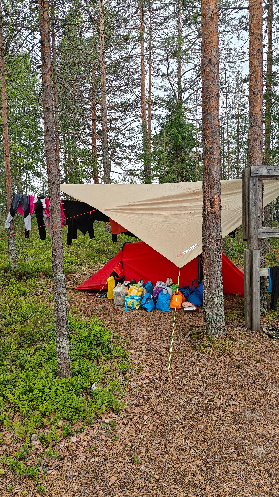 Päästiinpä perille, leirin pystytys ja ruuan laittoon.